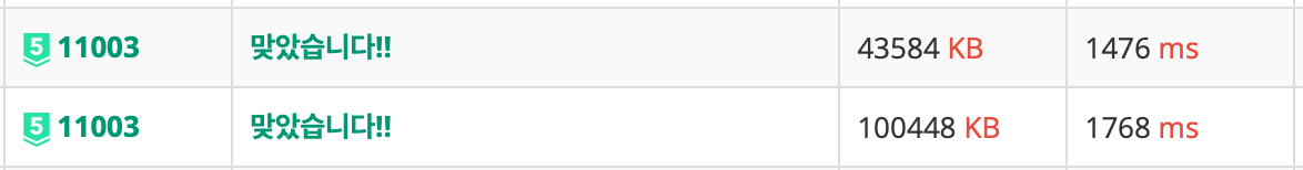 비교 - 아래가 우선순위 큐를 이용한 풀이, 위가 덱을 이용한 풀이