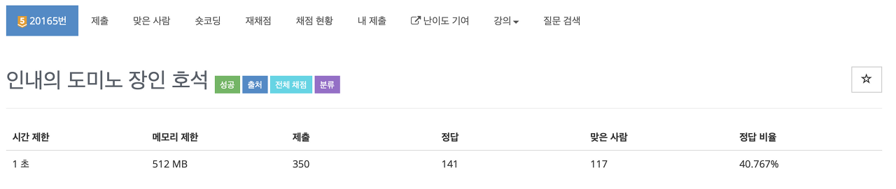 통과 후 질문을 확인해보니 내 코드가 통과하지 않는 반례가 있었다. 공격수가 처음 공격하는 도미노가 넘어진 상태면 아무일도 일어나야 하지 않는데, 이 예외에 대한 처리가 안되있어서 수정해서 제출했다.