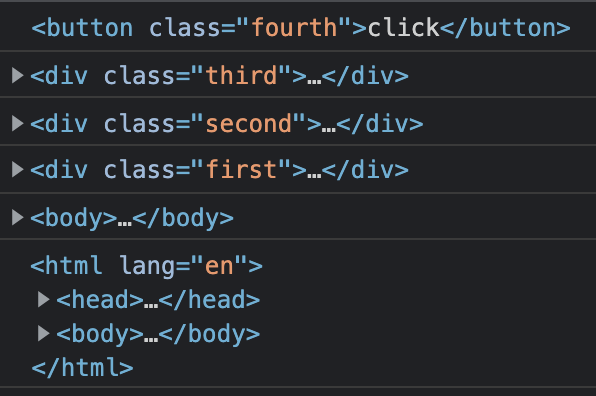 실행 결과 버튼이 위치한 4번 부터 1번까지, 그리고 body와 html 태그의 event handler를 순차적으로 실행시키는 모습을 확인할 수 있다.