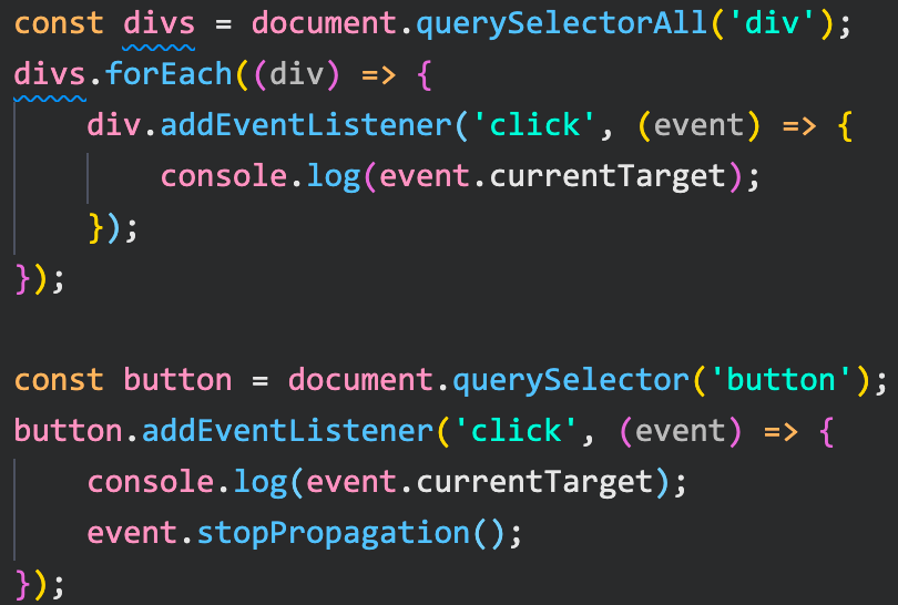 예시에서 버튼 이벤트에 stopPropagation 메소드를 호출하면 부모 노드로 버블링 되는 것이 멈춘다.
