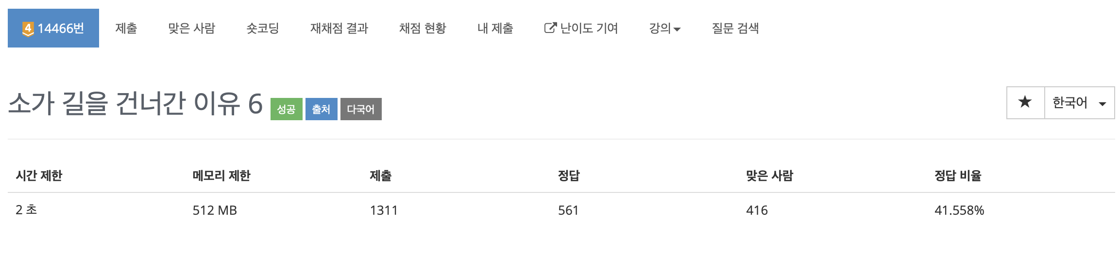 소에 index를 매긴 뒤 소마다 bfs를 돌아 index가 더 큰 소를 만나지 않는 횟수를 세주면 된다.