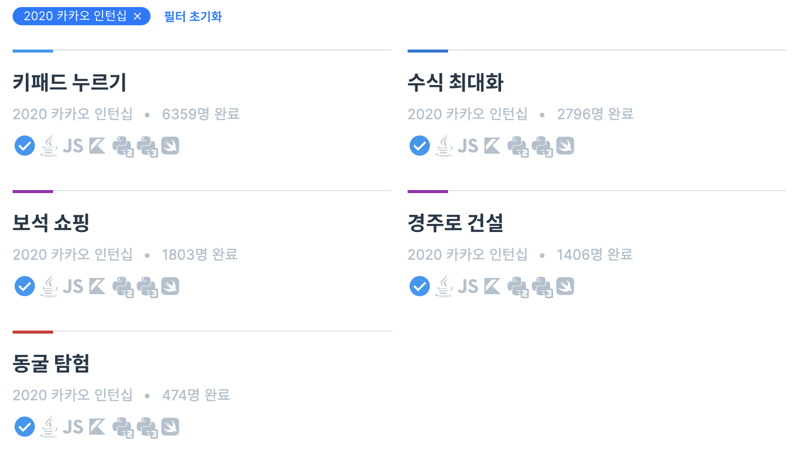 며칠전에 카카오 2021 여름 인턴십 공고가 올라와서 작년 문제를 실전처럼 시간을 재고 풀어봤다. 결과는 4솔. 5번 문제는 감이 안잡혀서 공식 블로그 해설을 참고해 풀어봤다. 작년엔 서류와 코딩테스트를 함께 평가해서 그런지 3솔하고 붙은 사람도 있고 5문제를 풀고 떨어진 사람도 있는 것 같다.