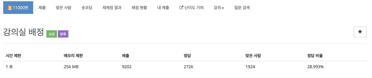 19598 최소 회의실 개수와 동일한 문제.